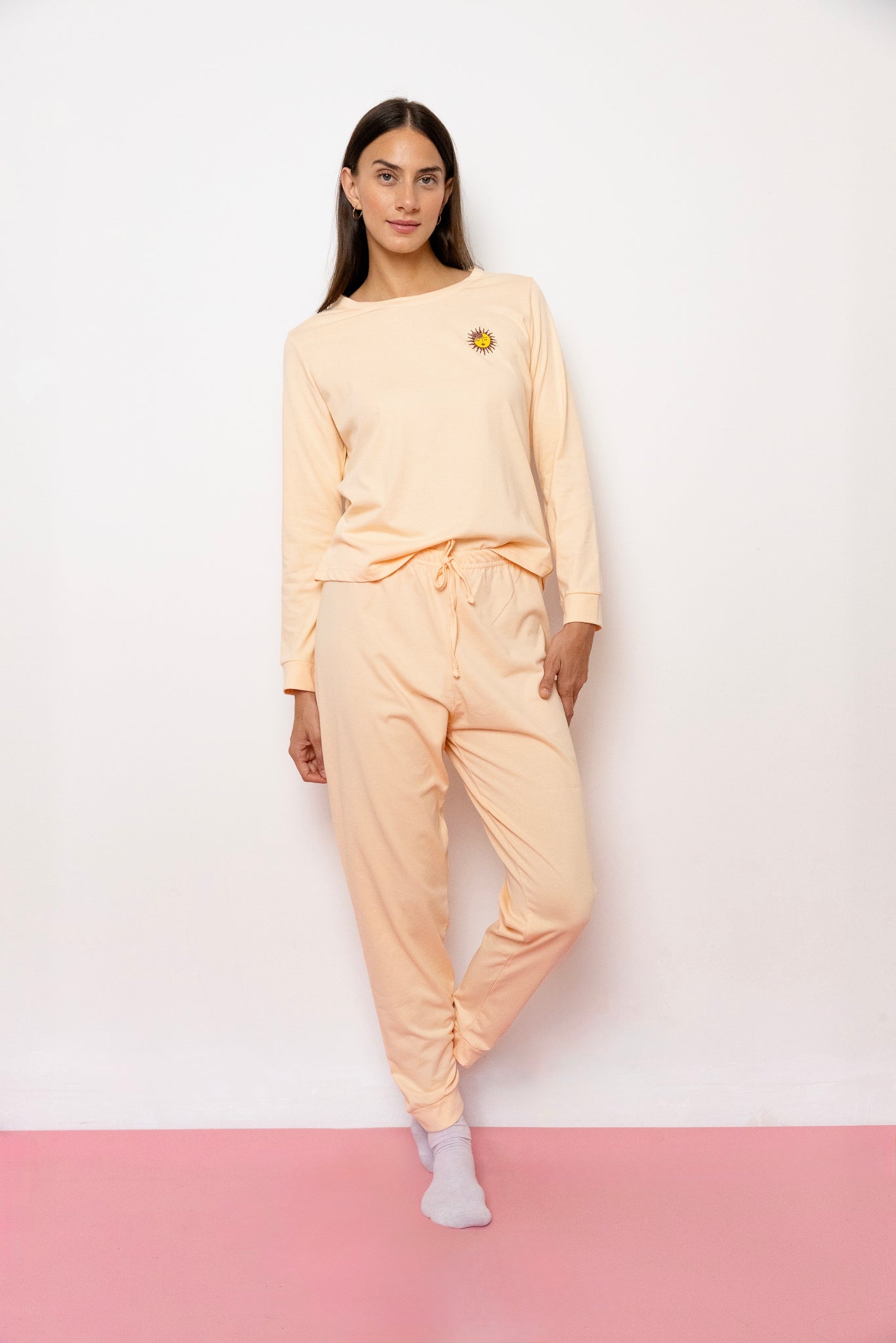 Cada pijama acompaña tus momentos más íntimos con suavidad y confort, recordándote que está bien tener días llenos de luz… y noches que invitan a la tranquilidad. Sol y Luna celebra a la mujer que se permite ser muchas cosas a la vez: fuerte y sensible, activa y serena.